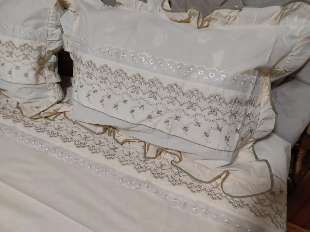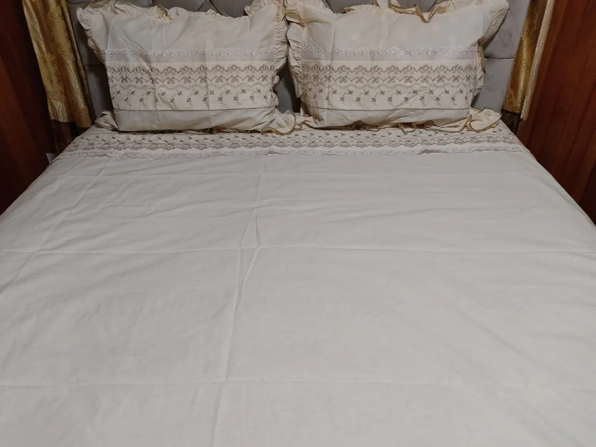 Jogo de Lençol Casal Bordado 04 Peças Bege